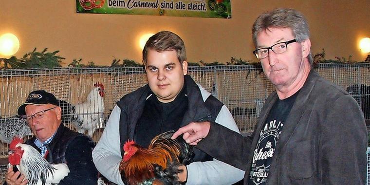 So wirkte Patrick Gernt am Wochenende unter anderem bei der Erstellung des Ausstellungskatalogs mit und Sebastian Zahn stiftete eine Ehrenschleife als Preis für einen Aussteller. Er selbst bekam auch einen Preis für seine Vorwerk- Hühner, die vom Preisrichter mit „sehr gut“ bewertet wurden.