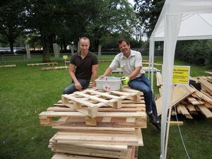 Hartmut Rubach (r.), Ortsvereinsvorsitzender der Rathenower SPD, und Felix Menzel, Bürgermeisterkandidat in der Gemeinde Milower Land, unterstützten am 11.07.2011 die Aktion „Stadt der Kinder“ - ein Projekt zum Bau einer Kinderstadt im Optikpark, das als Ferienbetreuung in Zusammenarbeit mit dem Bündnis für Familie durchgeführt wurde.