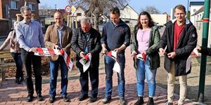 Grund zur Freude in Bützer: Für mehr als 160 000 Euro wurde der Dorfplatz in der Ortsmitte neu gestaltet. Anwohner ließen sich die Einweihung nicht entgehen.