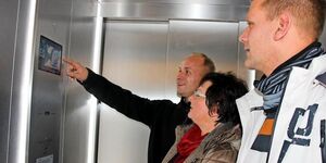 Die Inge-Sielmann-Grundschule in Milow ist jetzt barrierefrei. Mitglieder des Sozialausschusses der Gemeinde Milower Land testen den neuen Fahrstuhl und entdecken dabei ein digitales Extra.